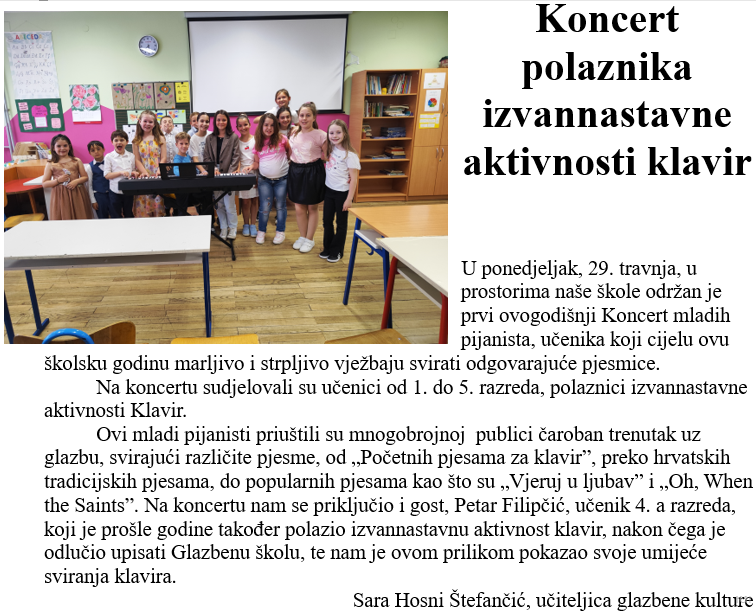 Koncert polaznika izvannastavne aktivnosti klavir