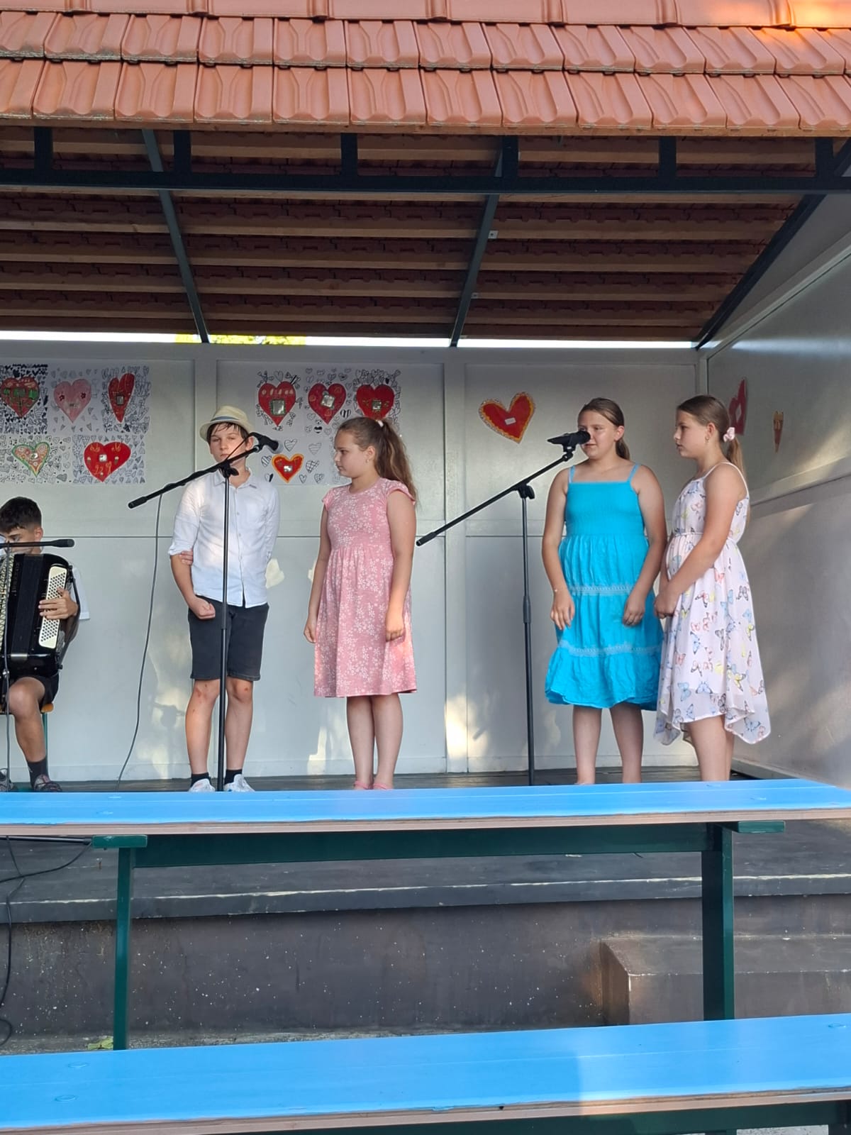U utorak, 18.06.2024. u našoj učionici na otvorenom pripremili smo glazbeno - recitatorski program KAJ H NAŠEM DVORIŠČU, posvećen zavičajnom govoru kajkavskoj ikavici.