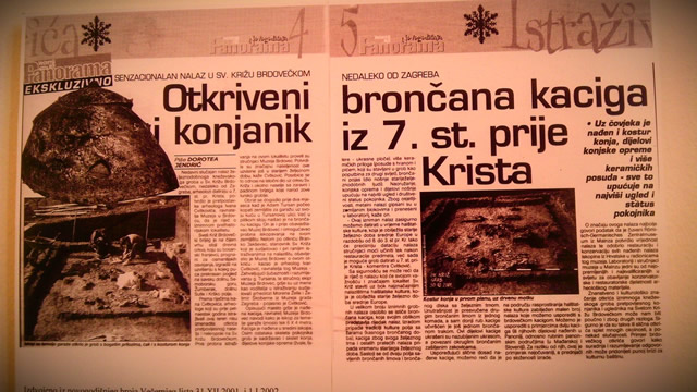 Na brežuljcima iznad doline Save u željezno doba (oko 700 godina prije Krista) niču brojna naselja od kojih je na Sv. Križu bilo najveće što potvrđuju arheološka istraživanja. O značaju ovog naselja govori i nedavno pronađen grob nekog uglednika. Pokojnik je bio pokopan zajedno sa svojim konjem u punoj opremi koju je nosio za života u posebnim prilikama (u ratu ili nekim svečanostima). Nađena je brončana kaciga sa željeznim trnom na vrhu. Ovo je prvi nalaz takve kacige u svijetu. Uz pokojnika prilagalo se posuđe sa popudbinom za onaj svijet.Takve grobove sa tako bogatom opremom nazivamo kneževskim grobovima.