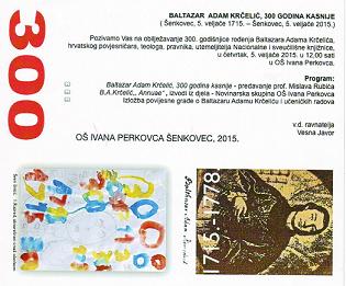 5. veljače obilježili smo 300. godišnjicu rođenja hrvatskog povjesničara, teologa i pravnika Baltazara Adama Krčelića koji je rođen u Šenkovcu kraj Zaprešića.