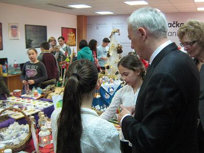 Izložili smo neke svoje stare proizvode (jabučni ocat i mirisne vrećice od lavande), za koje uvijek postoji interes kupaca, kao i neke nove proizvode, kao što je pekmez od jabuka. Naš izložbeni prostor uljepšale su i božićne čestitke, kao i vesela božićna srca izrađena šivanjem i vezenjem.