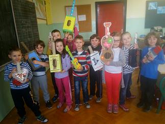 Za samostalan rad dobili su zadatak izraditi glazbalo pomoću kutije,olovke,tube i gumice.