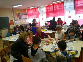 U vrlo ugodnom druženju nastali su lijepi zajednički uradci koji će biti predstavljeni na ovogodišnjem Uskršnjem sajmu u školi.Zahvaljujemo se mamama (i baki) na velikom odazivu i radujemo se budućim susretima.