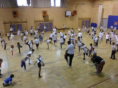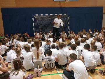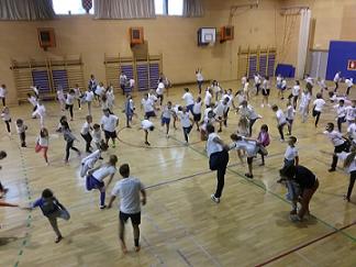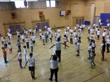 I naši učenici i učiteljice vođeni učiteljem tjelesne i zdrastvene kulture, Marijanom Bužanićem, zajedničim vježbanjem i kratkim predavanjem o našim „olimpijcima“pridružili su se obilježavanju toga dana.