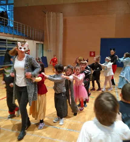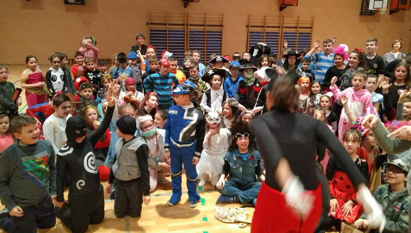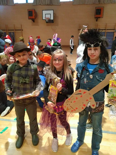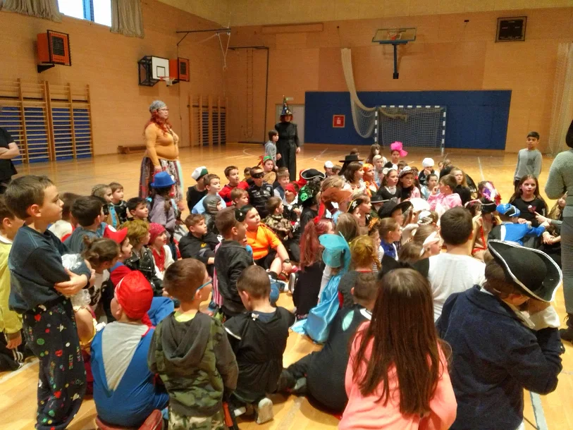 Veselje i igra u sportskoj dvorani potrajali su do kraja nastavnog dana, a onda su svi požurili svojim kućama, kako bi ukućanima i susjedima pokazali svoje maske i zaradili još pokoju krafnu ili bonbon.