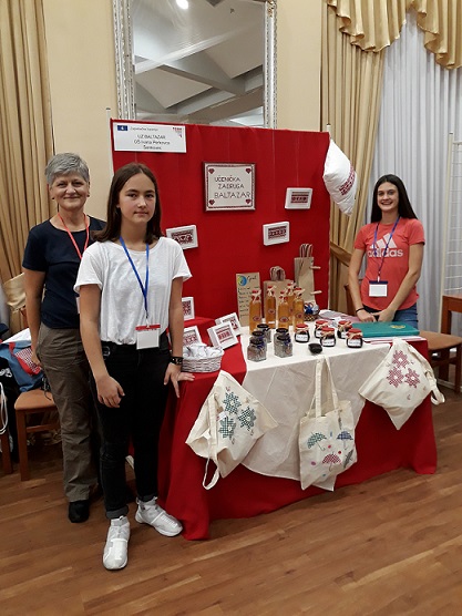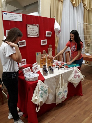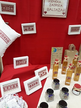 UZ Baltazar je , uz svoje tradicionalne proizvode (jabučni ocat, pekmez od šljiva, tradicijski vez…), predstavila i ovogodišnji projekt izrade i ukrašavanja platnenih torbi. Učenice su opisale postupak izrade naših „torbi koje čuvaju prirodu“, ali i praktično pokazale šivanje gumbi i vezenje uzoraka na platnu.