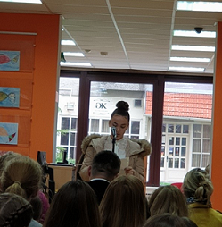 Ljetni pljusak (Ema Gerjević, 8.b), Moj djed (Karla Porobić, 6.b), Po zimi (Ana Švec, 6.a) voditeljice Natalije Dujaković.