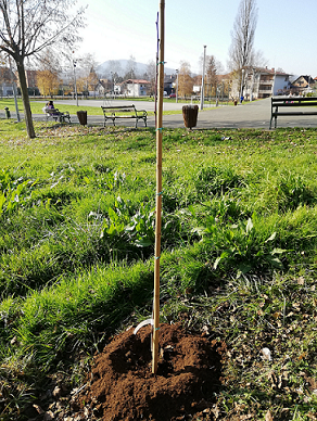 Ovaj poseban poklon dobili smo uključivanjem u projekt Zagrebačke županije: "Uvođenje i razvoj ekološke proizvodnje ljekovitog i začinskog bilja – školski vrtovi". Posebno su bili uzbuđeni naši prvašići koji su uz učiteljicu Ružicu Tanodi pažljivo promatrali sadnju ovog posebno vrijednog stabla.