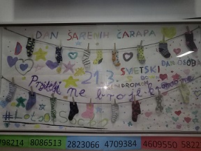 Osim što smo nosili šarene, rasparene čarape, učenici 5.b razreda ukrasili su pano naše škole, a učenici 6.a razreda napisali su poruke podrške svojoj vršnjakinji iz razreda s Down sindromom.