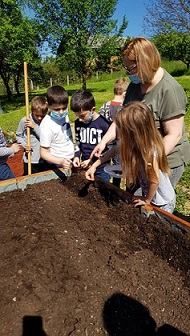 Uključenjem škole u projekt Zagrebačke županije: Uvođenje i razvoj ekološke proizvodnje ljekovitog i začinskog bilja - školski vrtovi odobrena su nam sredstva u iznosu od 5000,00 kn koja smo iskoristili za nabavku visokih gredica. Učenici 2. razreda sa svojim učiteljicama Gordanom Papac i Kristinom Kresnik, uz asistenciju našeg domara Krune, zasadili su svoj mali vrt. Koliko veselja kada je prva jagoda sazrijela, a sad s nestrpljenjem očekujemo salatu, blitvu, mrkvu....