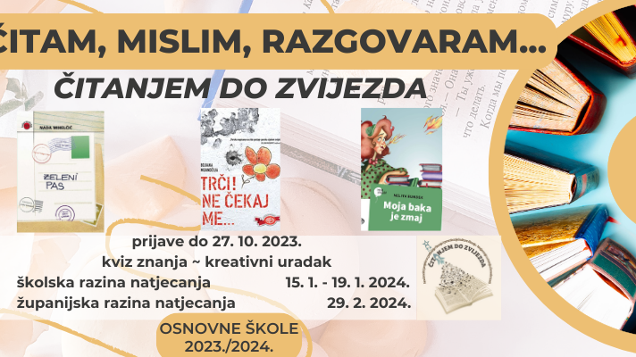 Ovogodišnja je tema "Čitam, mislim, razgovaram", a čitali smo romane "Trči" Ne čekaj me..." Bojane Menadžije, "Moja baka je zmaj" Melite Rundek i "Zeleni pas" Nade Mihelčić.