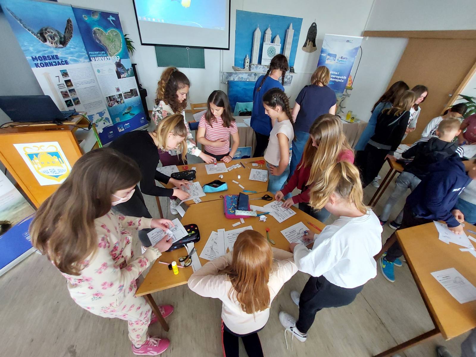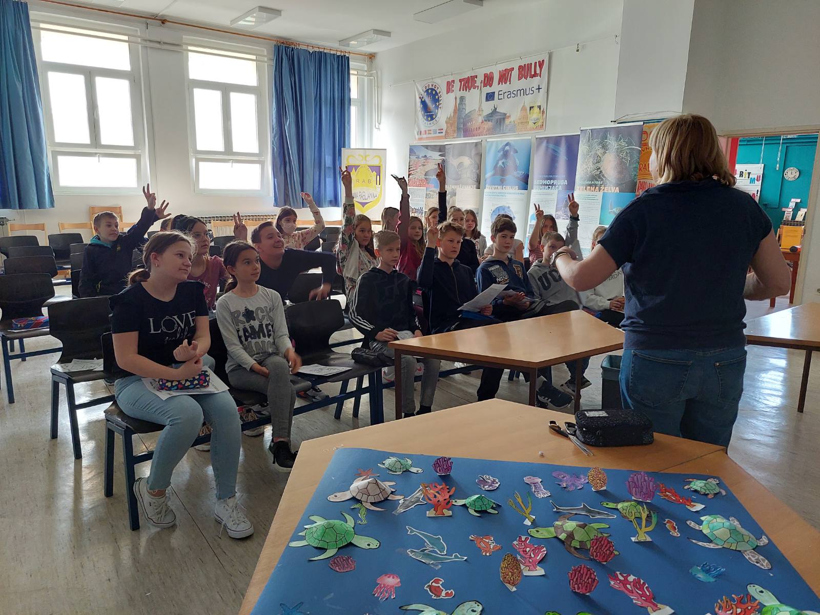Učenici su sa zanimanjem slušali predavanje voditeljice Renate Brezinščak u BiC-u. Nakon zanimljivosti o životu i životnim ciklusu morskih kornjača, učenici su saznali koje opasnosti prijete morskim kornjačama tijekom njihovih života. Učenici su zajednički izradili plakat sa živim organizmima mora i ispunili listiće te pokazali znanje na završnom kvizu.
