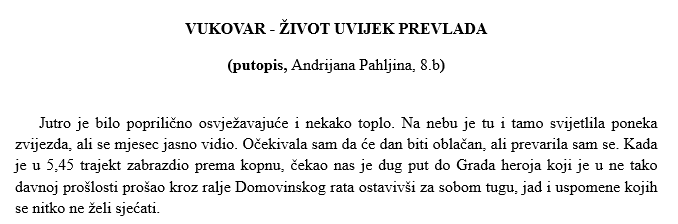U sklopu terenske nastave 25. i 26. travnja 2022. godine učenici osmih razreda naše škole posjetili su Vukovar nakon dvogodišnje stanke.