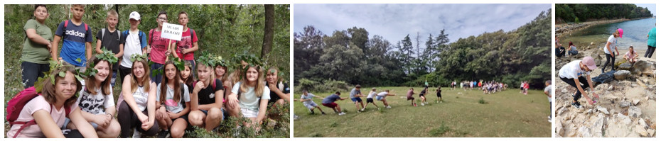 Podijeljeni u interesne skupine čistili smo plažu (Eko grupa), tražili samonikle jestive biljke (skupina Mladi biolozi), proučavali biljke putem aplikacije Pl@ntNET, obilazili lokacije crkava u šumi Dundo (skupina Tragovima Premužića), čitali poeziju u prirodi, igrali štafetne igre, crtali pejzaž (skupina Priroda kroz crtež), igrali odbojku i nogomet, tražili različite predmete po zadanim stranama svijeta (skupina Search and find), igrali memory i pjevali pjesmice na talijanskom jeziku i opuštali se uz časopise i društvenu igru Uno (skupina Dekica).