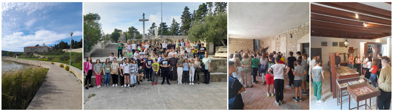 Nakon ugodne šetnje uz suncem obasjanu uvalu sv. Eufemije stigli smo do samostana gdje nas je radosno dočekao župnik fra Ivica Stričić. Fra Ivica je u prvom dijelu upoznao učenike sa povijesnim i vjerskim značajem crkve i samostana te pojedinostima vezano uz njihov osnutak, a potom smo se uputili u muzej. Učenici su ondje imali priliku upoznati se s vrijednim primjercima pisanih dokumenata s posebnim naglaskom na razvoj tiskarstva i primjerke prvotiska (inkunabula) na glagoljici i latinici. Učenici su se potom puni dojmova i malčice umorni od dugačke šetnje vratili u školske klupe.