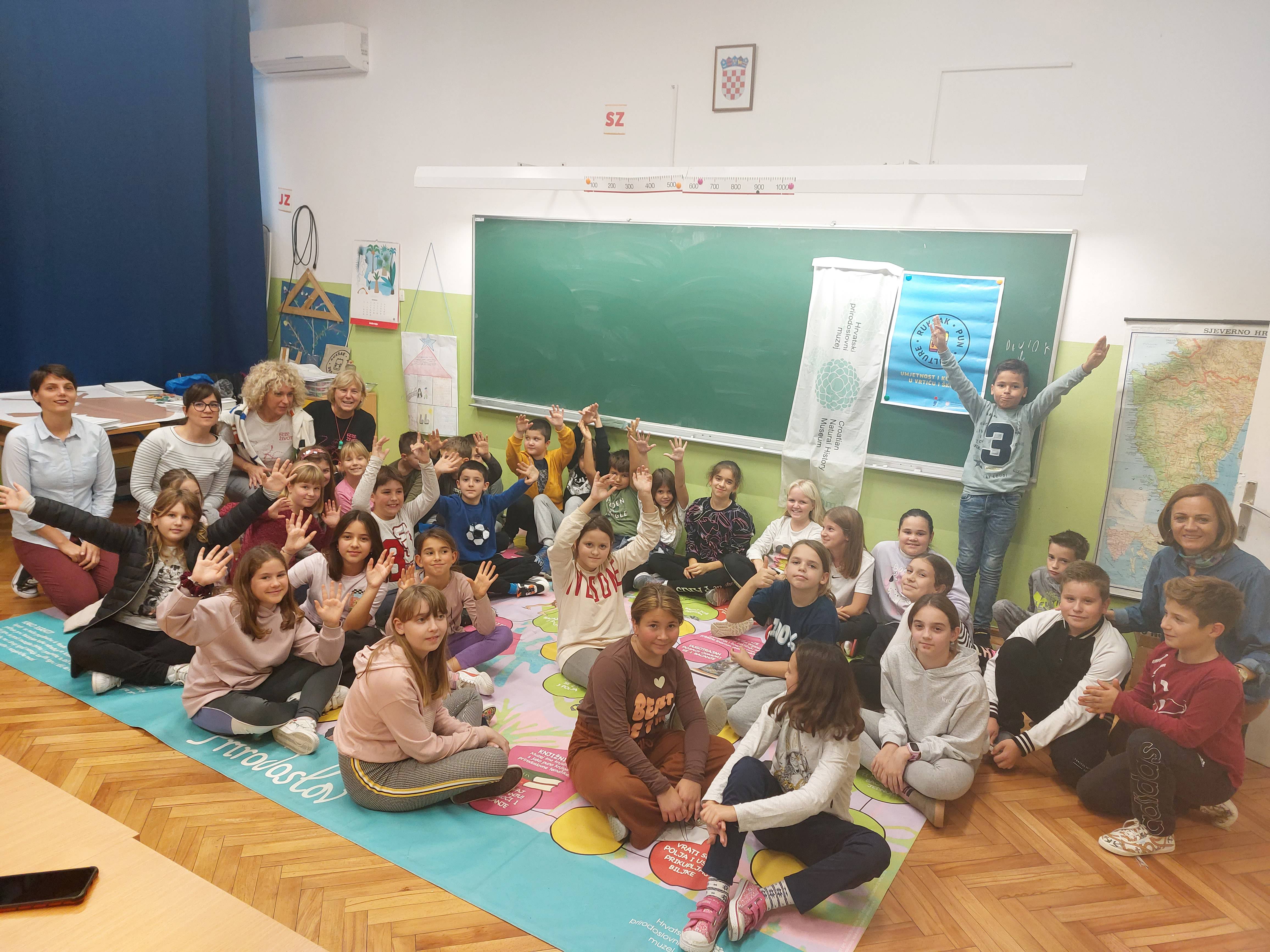 Učenici 3.a i 4.a razreda sudjelovali su 10. studenog u edukativno-kulturnom programu "Izumrli divovi Hrvatske" koji su vodile muzejske pedagoginje i dipl. ing. geologinje Petra Šparica i Renata Brezinščak iz Hrvatskog prirodoslovnog muzeja u Zagrebu. Na dva školska sata učionice 3. i 4. razreda pretvorile su se u mali interaktivni muzej u kojem su učenici kroz igru učili o paleontologiji i izumrlim životinjskim vrstama s područja Republike Hrvatske.