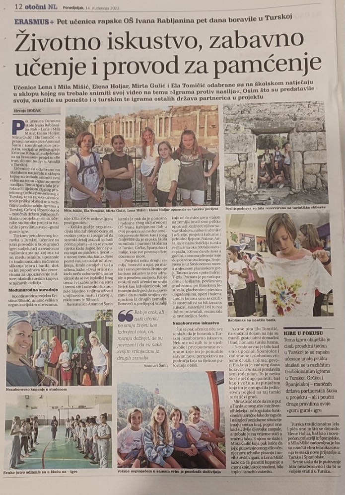Mobilnost u Turskoj popratio je i NL. Učenice će na sjednici UV koja se održava 16.11. prezentirati svoj boravak u Turskoj, a isto tako će u četvrtak gostovati na Radio Rabu.