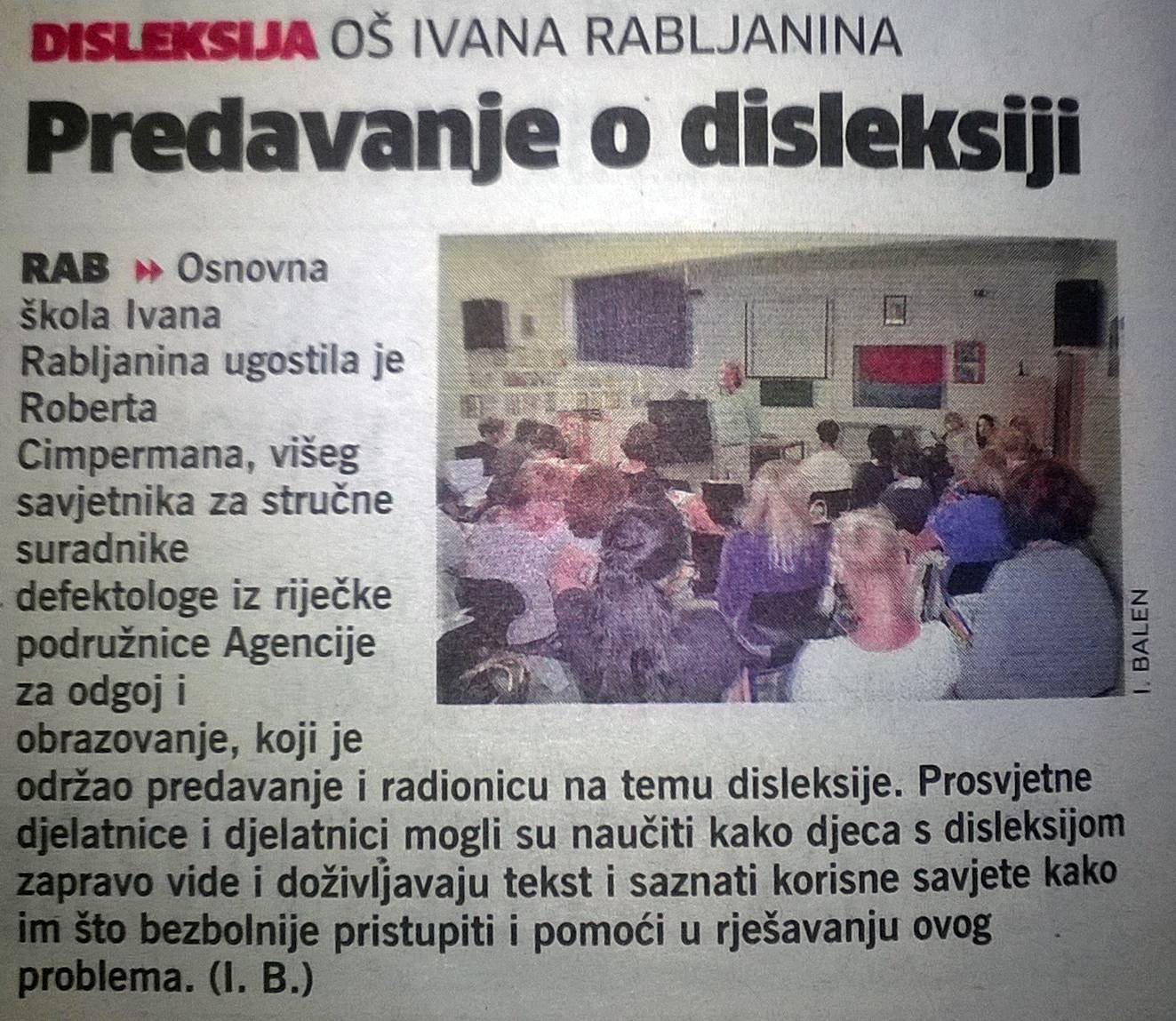 U srijedu 24. rujna naša je škola ugostila Roberta Cipermana, višeg savjetnika za stručnjake edukacijsko-rehabilitacijskog profila iz riječke podružnice Agencije za odgoj i obrazovanje, koji je održao predavanje na temu disleksije. Kroz predavanje i radionicu učitelji i učiteljice imali su priliku približiti se problematici iz perspektive djeteta i pokušati razumjeti način na koji djeca s disleksijom doživljavaju tekst i probleme s kojima se svakodnevno susreću.