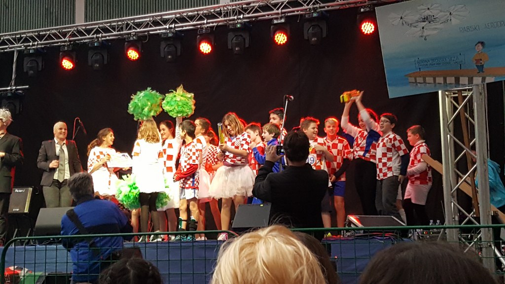 Iako, naravno, nije važno pobijediti, već sudjelovati, potajno su se sve skupine nadale putu u Zadar - nagradi za prvoplasiranu osnovnoškolsku i srednjoškolsku masku. Ove je godine pobjedu odnio 5.a razred s razrednicom Karmen Pende Šimičić i to s maskom hrvatske nogometne momčadi i navijačica!