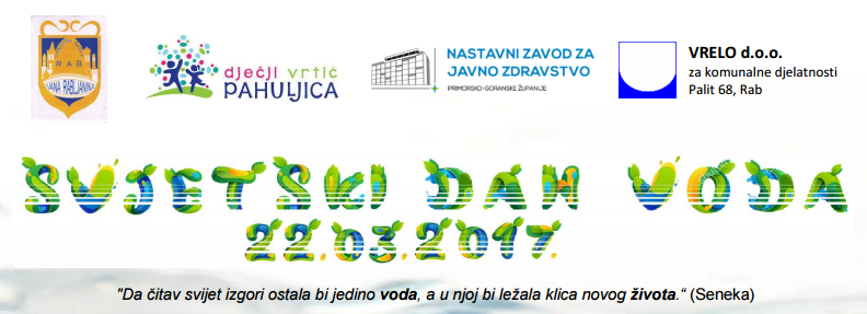 Komunalno društvo Vrelo d.o.o. u suradnji s Nastavnim zavodom za javno zdravstvo, Osnovnom školom Ivana Rabljanina Rab i Dječjim vrtićem Pahuljica 22. ožujka 2017. godine obiljžavaju Dan voda u tjednu od 20. do 24. ožujka sa sljedećim aktivnostima...