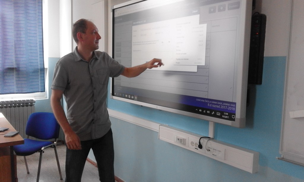 30 tableta, a njihovi profesori hibridna računala. Također, svi ostali profesori i stručni suradnici dobili su tablete i prijenosna računala, te se od prošle nastavne godine educiraju za rad u ovim aplikacijama. Ova se tehnologija, koja uključuje i bilježenje nastave u e-Dnevnik umjesto u dosadašnje „papirnate“ dnevnike i imenike, za sada primjenjuje samo u matičnoj školi, no čim se ostvare uvjeti za to (dovoljna pokrivenost Internet signalom), uključit će se i sve rapske područne škole. Provedba projekta omogućena je zahvaljujući sponzorstvu Hrvatske akademske i istraživačke mreže CARNet.