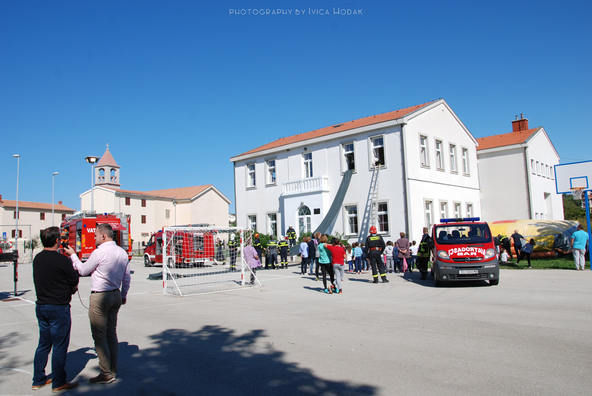 Zamišljeni scenarij, kako nam je detaljno objasnio zapovjednik vatrogasne postrojbe DVD-a Rab Milivoj Ličina, bio je nastanak požara u školskom prizemlju, nakon čega je dim ispunio stubište te se učenici i učitelji na katu nisu mogli evakuirati. Djelatnici škole u tom trenutku, prema scenariju, evakuiraju učenike i ostale djelatnike u prizemlju te pozivaju vatrogasce. Na intervenciju se upućuje DVD Lopar koji započinju sa gašenjem požara unutarnjom navalom te pristupaju katu uporabom ljestvi po fasadi zgrade.