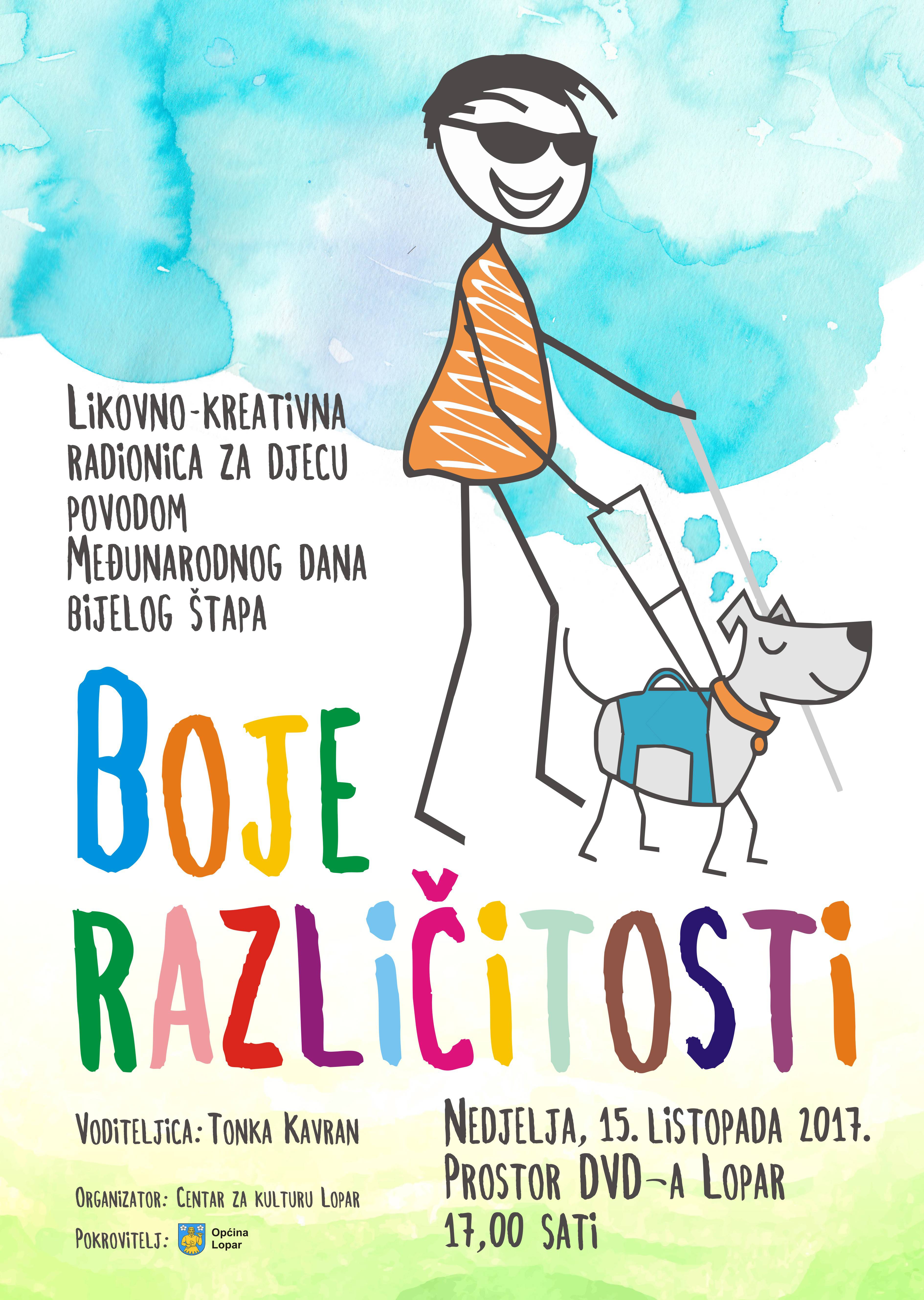 15. listopada, povodom Međunarodnog dana bijelog štapa, u Loparu će se održati likovno-kreativna radionica za djecu „Boje različitosti“!