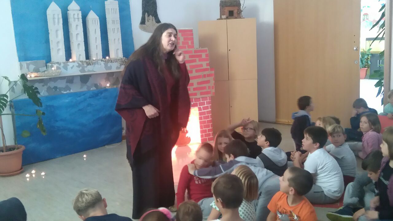 Povodom Mjeseca hrvatske knjige, u našoj je školi 19. listopada gostovala profesionalna i jedina pripovjedačica narodnih bajki, Dubrovčanka Jasna Held, na međunarodnim festivalima proglašena jednom od deset najboljih pripovjedača na svijetu.