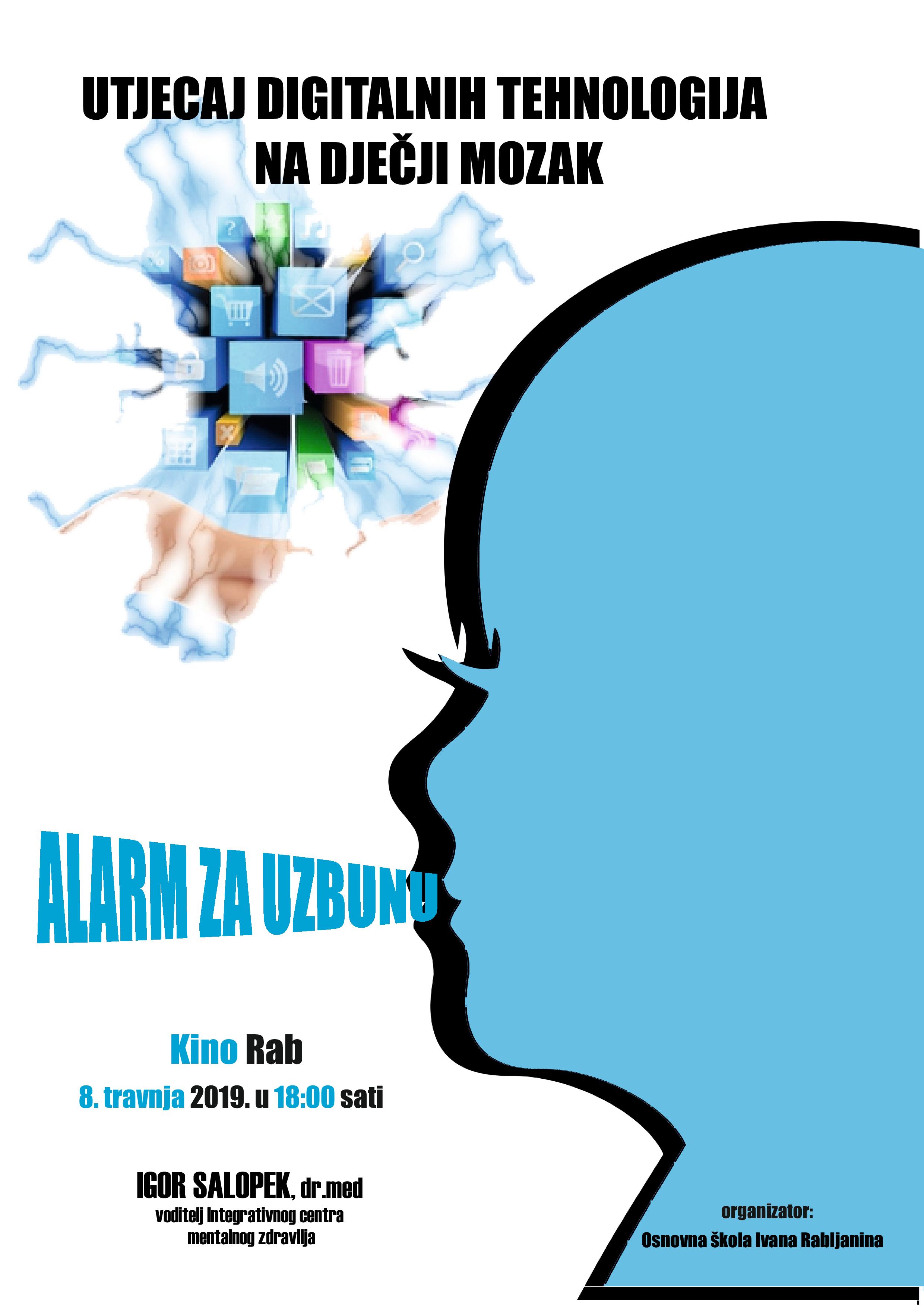 Zbog intenzivne upotrebe pametnih telefona kod male djece i mladih sve se češće primjećuju kognitivni problemi kao što su poteškoće pamćenja, učenja, koncentracije i pažnje. Na predavanju dr. med. Igora Salopeka bit će govora o navedenoj problematici uz prikaz najnovijih istraživanja i najvažnijih spoznaja te će se istaknuti moguća konstruktivna rješenja i smjernice za poboljšanje mentalnog zdravlja djece i mladih.