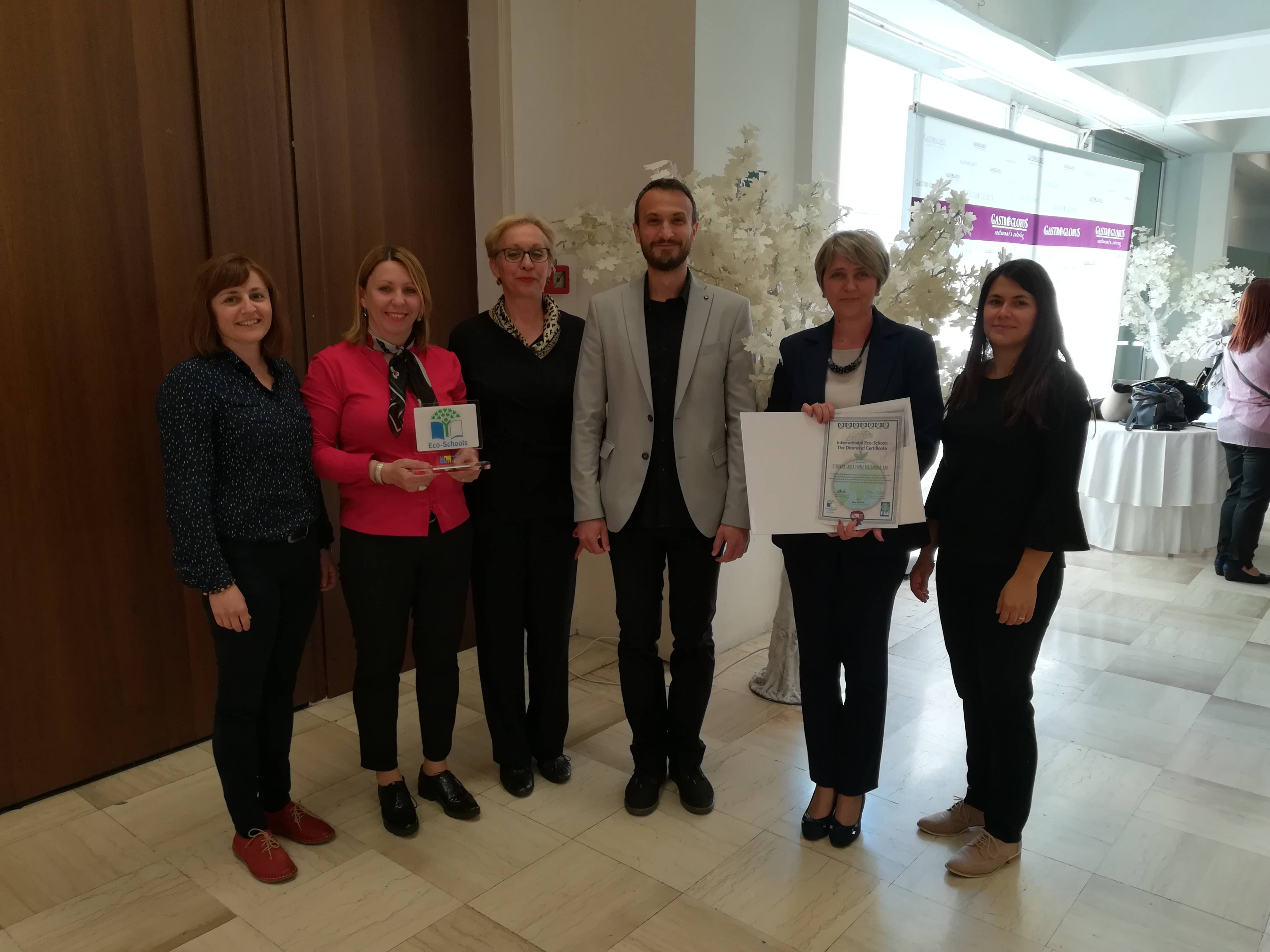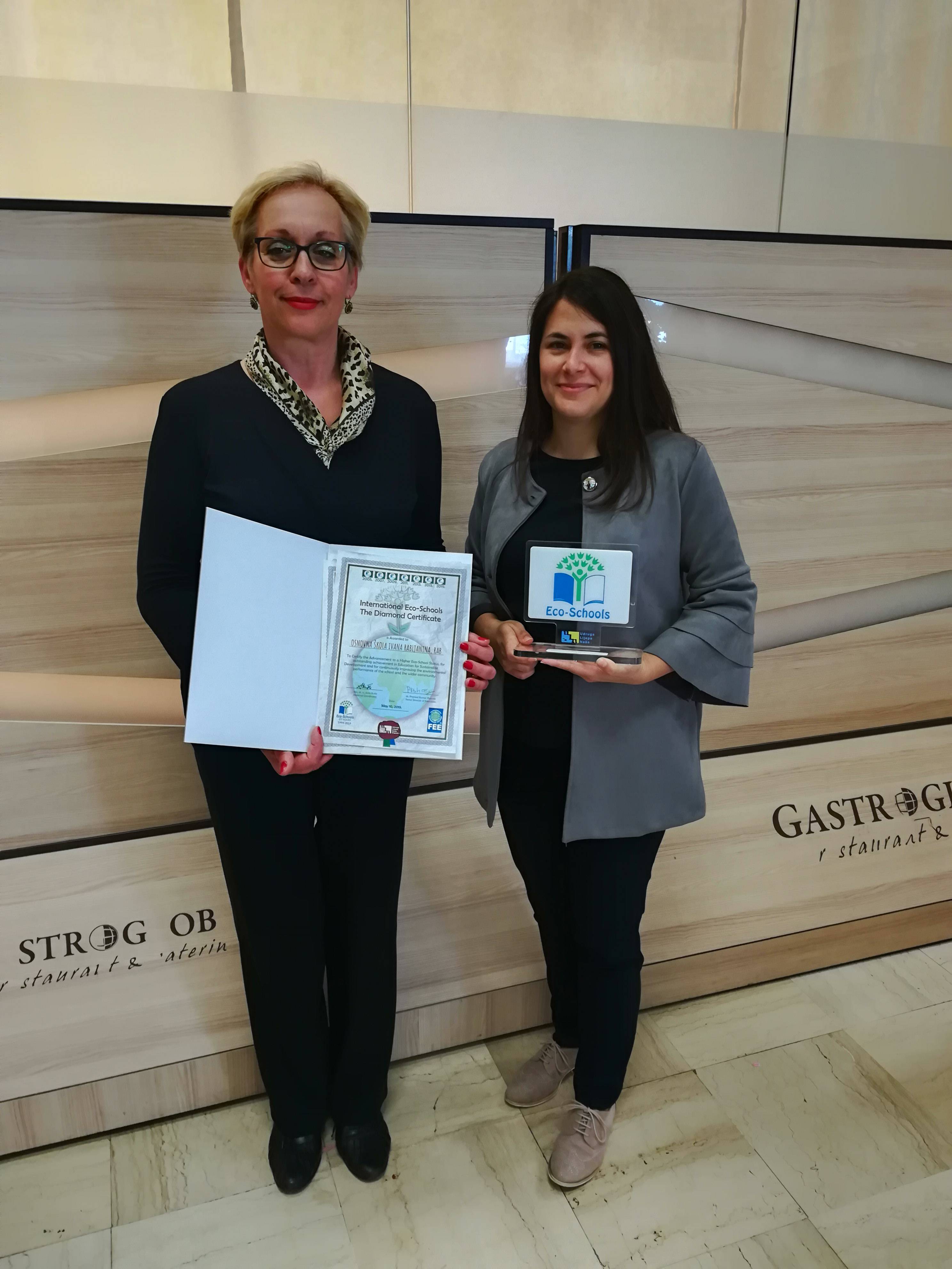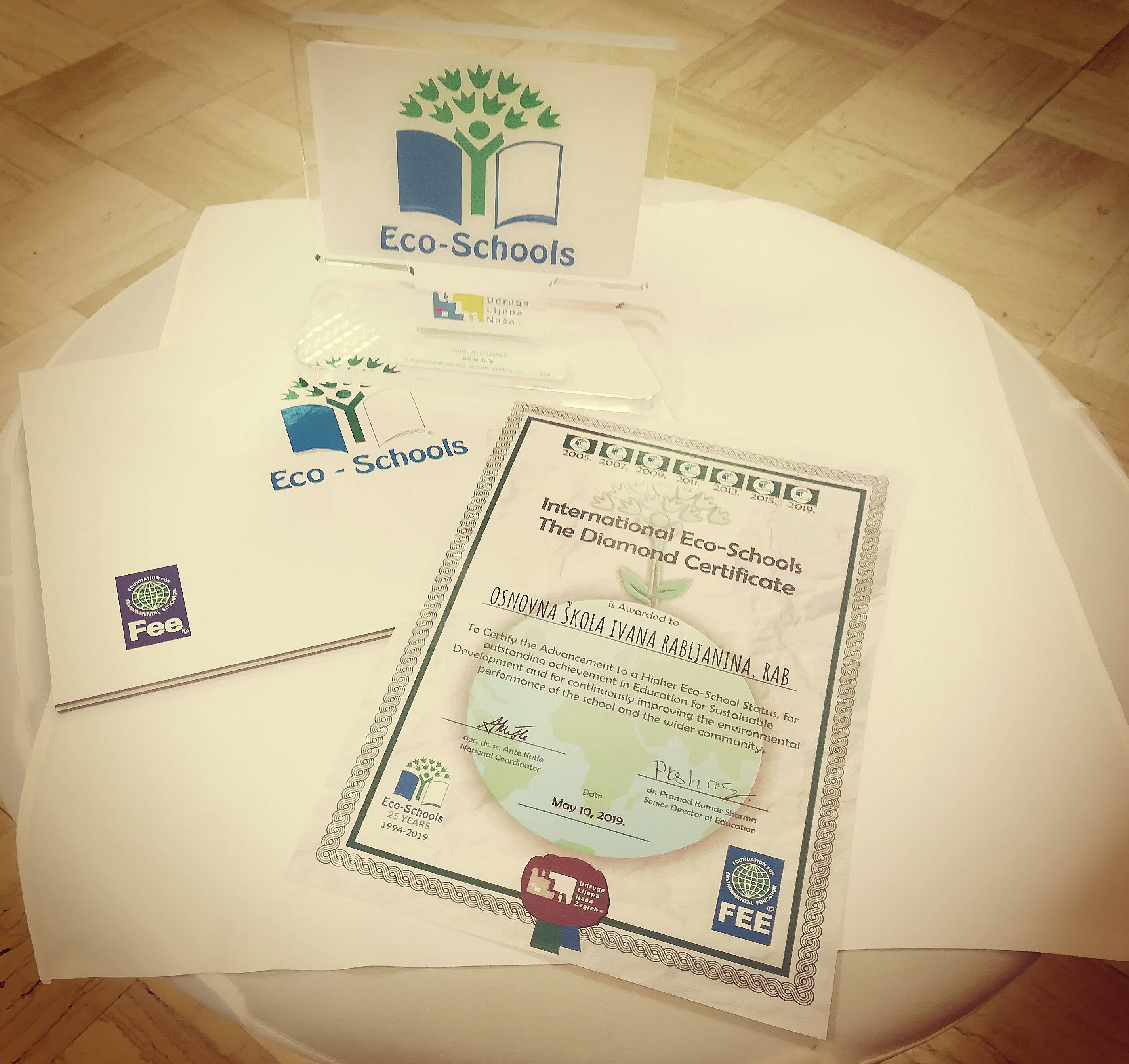 Naša je škola petu godinu zaredom dobitnica plakete Eko škole, čime smo dobili dijamantni status. Ova nagrada uručena je ravnateljici A. Šarin, te predstavnicima škole i grada Raba.