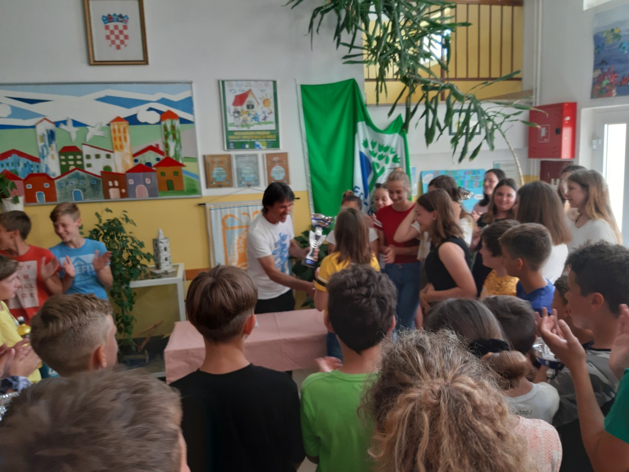 Završeno je prvenstvo naše škole u futsalu. Broj prijavljenih ekipa i sudionika potvrđuje opravdanost organizacije ove simpatične sportske manifestacije: 22 prijavljene ekipe (14 u muškoj i 8 u ženskoj konkurenciji), 127 prijavljenih sudionika (90 dječaka i 37 djevojčica). Nakon 76 odigranih utakmica i 128 postignutih golova, dobili smo ponajbolje u 3 kategorije. U kategoriji nižih razreda (5. i 6. razredi), „petaši“ su u polufinalnom susretima iznenadili „šestaše“ i plasirali se u finale. Tamo je ekipa 5.c (RAZBIJAČI), rezultatom 1 – 0 pobijedila 5.b (ŠTEMALICA). U konkurenciji viših razreda natjecali su se samo 7. razredi. Na kraju je, nakon 10 odigranih kola, slavila ekipa 7.d (YUGOPLASTIKA) s 14 bodova ispred 7.c (BANDA IZ 7.c) s osvojenih 11 bodova. I, na kraju, djevojčice: nitko nije vjerovao da će se prijaviti čak 8 ekipa. Finale su igrale „sedmašice“. Spretnije i sretnije bile su djevojčice iz 7.d (NINDŽA KORNJAČE) koje su, tek nakon izvođenja „penala“, uspjele pobijediti cure iz 7.c (PAČIĆI).