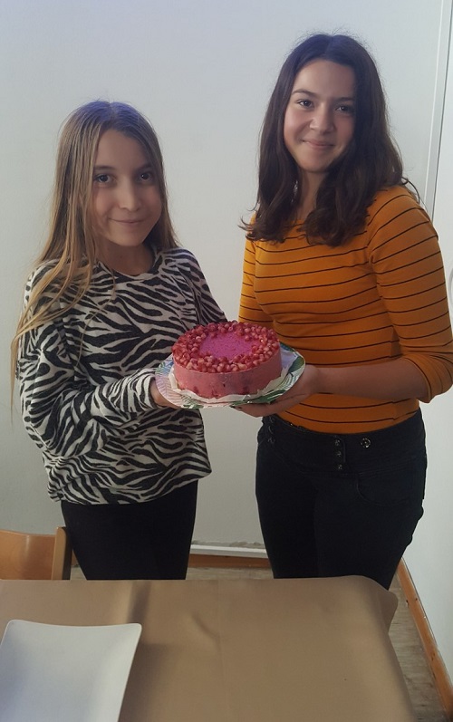 Na kraju predavanja učenici i predavač međusobno su razmijenili neke recepte za zdrave slastice, a počastili smo se i zdravom hladnom tortom od malina i šipka koju su izradile učenice Marija Luisa Andreškić iz 7.a i Ella Fafanđel iz 7.d razreda. ![]()