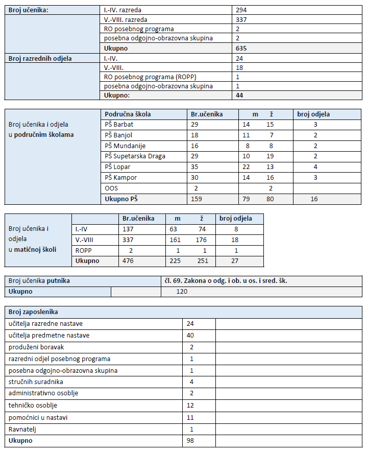 051 724 036 – centrala 051 777 089 – ravnateljica PŠ Barbat – 051 721 077 PŠ Banjol – 051 724 861 PŠ Mundanije – 051 771 343 PŠ Supetarska Draga – 051 776 163 PŠ Lopar – 051 775 110 PŠ Kampor – 051 776 341 |