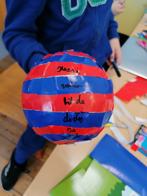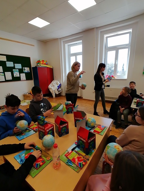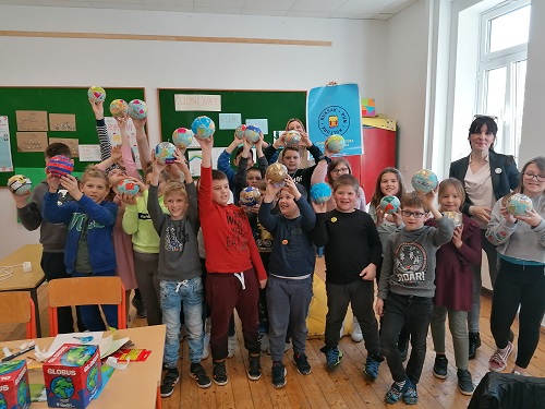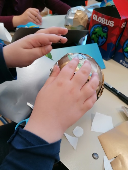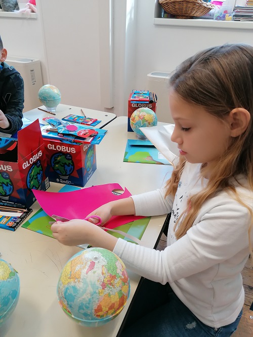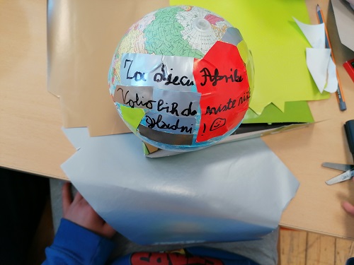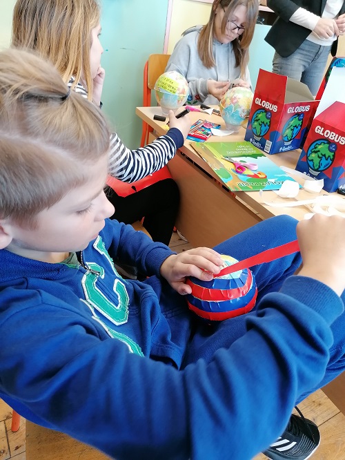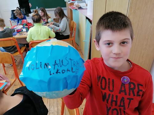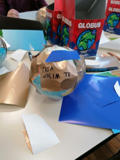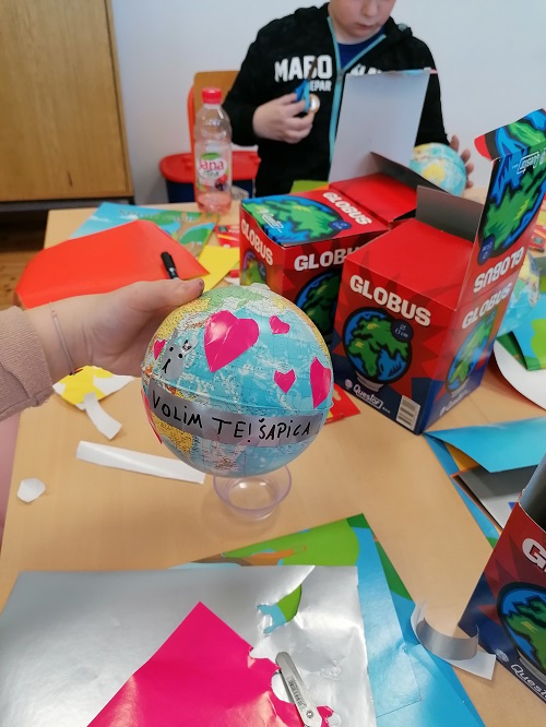 Prema uzoru na poznatog suvremenog hrvatskog umjetnika Dimitrija Bašičevića Mangelosa, koji je, između ostalog, poznat po oslikavanju globusa, učenici su pokušali i sami oslikati svoj globus koristeći se samoljepljivim kolažom. Nakon ukrašavanja svaki učenik je osmislio vlastitu poruku svome idolu, osobi koju voli, koja mu je uzor ili pak izrazio je samo svoje vlastito mišljenje i prenio ga na globus.