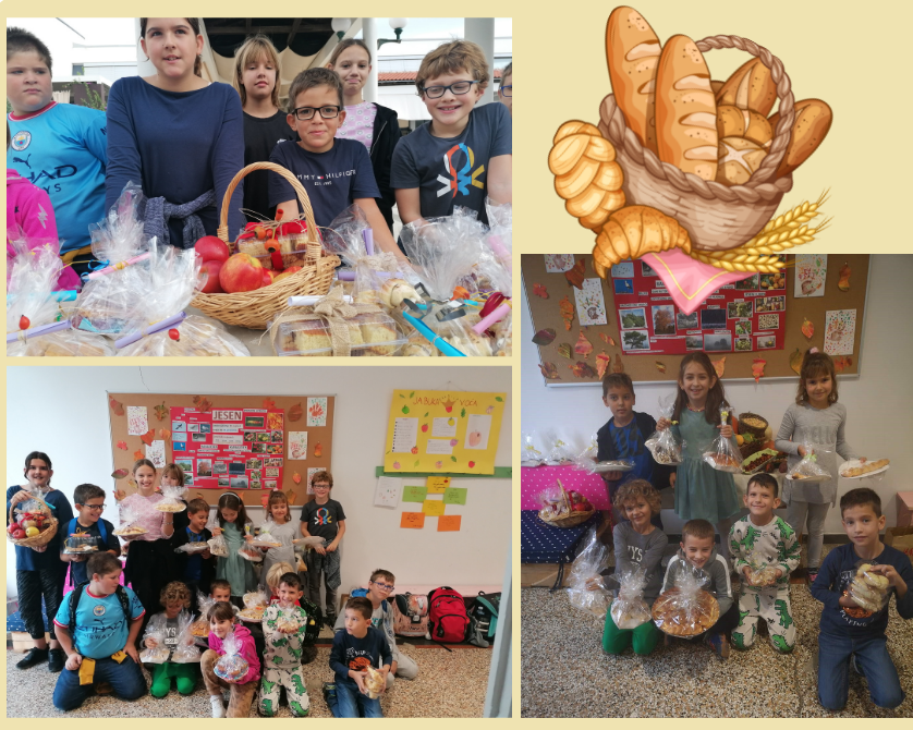 I ove godine obilježili smo Dane kruha i zahvalnosti za plodove zemlje. Uživali smo u raznim kreativnim radionicama. Puno toga smo naučili o kruhu, jesenskim plodovima i jabukama. Posjetili smo samostan Sv. Andrije i doznali kako se izrađuju hostije. U školi smo pekli palačinke koje su bile jako ukusne. S roditeljima smo ispekli kolače s jabukama i razne krušne proizvode s kojima smo sudjelovali na prodajnom sajmu. Zabavili smo se, uživali i najeli se raznih poslastica!