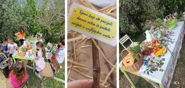 Dana, 8.5.2023., prvašići PŠ Banjol posjetili su OPG Kod Hrvoja u sklopu izvanučioničke nastave iz Prirode i drušva. Posjet OPG-u bio je u svrhu ponavljanja gradiva na temu proljeće. Domaćica Anamarija Grgurić nas je srdačno dočekala te nam pokazala što sve imaju i čime se bave na svom OPG-u. Učenicima je ispričano kako se stvorila ideja o otvaranju svog OPG-a. Priču su započela njihova djeca koja su počela prodavati povrće kako bi njihov tata Hrvoje mogao raditi na njivi. Učenicima se priča jako svidjela. Nakon razgleda plastenika i objašnjenja čemu oni služe porazgovarali smo o povrću i voću i radovima koja se vrše na njivi. Prvi zadatak za učenike bilo je posaditi sjemenke tikvica, a nakon toga učenici su dobili vrtni alat i kante te su prionuli poslu na njivi. Učenici su shvatili kako rad na njivi nije nimalo lagan. Nakon napornog rada počastili su nas pićem, voćem i kolačima. Kada su se učenici odmorili i poigrali obavili smo sadnju dinja pomoću posebnog alata što je učenicima bilo vrlo zanimljivo. Prije odlaska domaćica Anamarija Grgurić nam je poklonila prekrasan ručni rad za uspomenu na ovaj posjet te svakom učeniku sadnicu paprike s porukom: