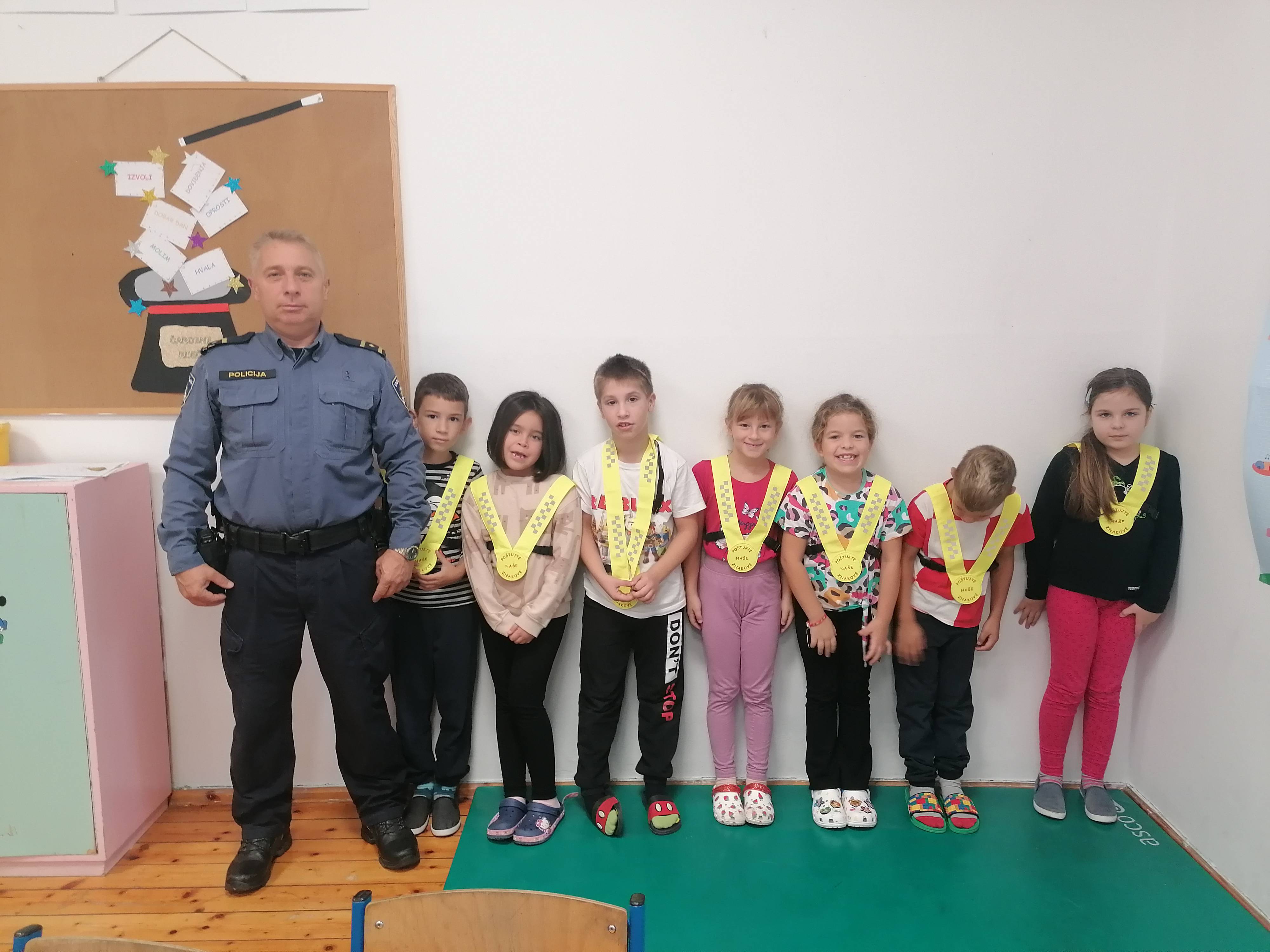 U petak, 4. listopada 2024. godine policijski službenik PP Rab posjetio je 1. razred. Učenicima je održao kratko predavanje o sigurnosti u prometu i važnim prometnim pravilima. Učenici su s velikim zanimanjem slušali policajca te mu postavljali razna pitanja. Pri kraju predavanja svatko od učenika dobio je simboličan dar.