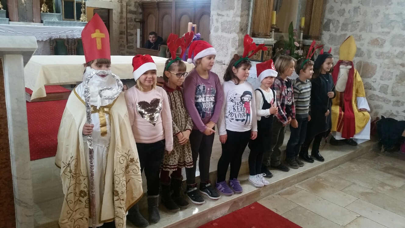Sveti Nikola uspio je na vrijeme stići u Crkvu sv. Stjepana gdje su ga veselo dočekali učenici PŠ Barbat.Pred prepunom crkvom pjevali su i glumili u prigodnim igrokazima tako da su svetoga Nikolu, kao i dječicu, roditelje, bake, djedove...posebno obradovali.