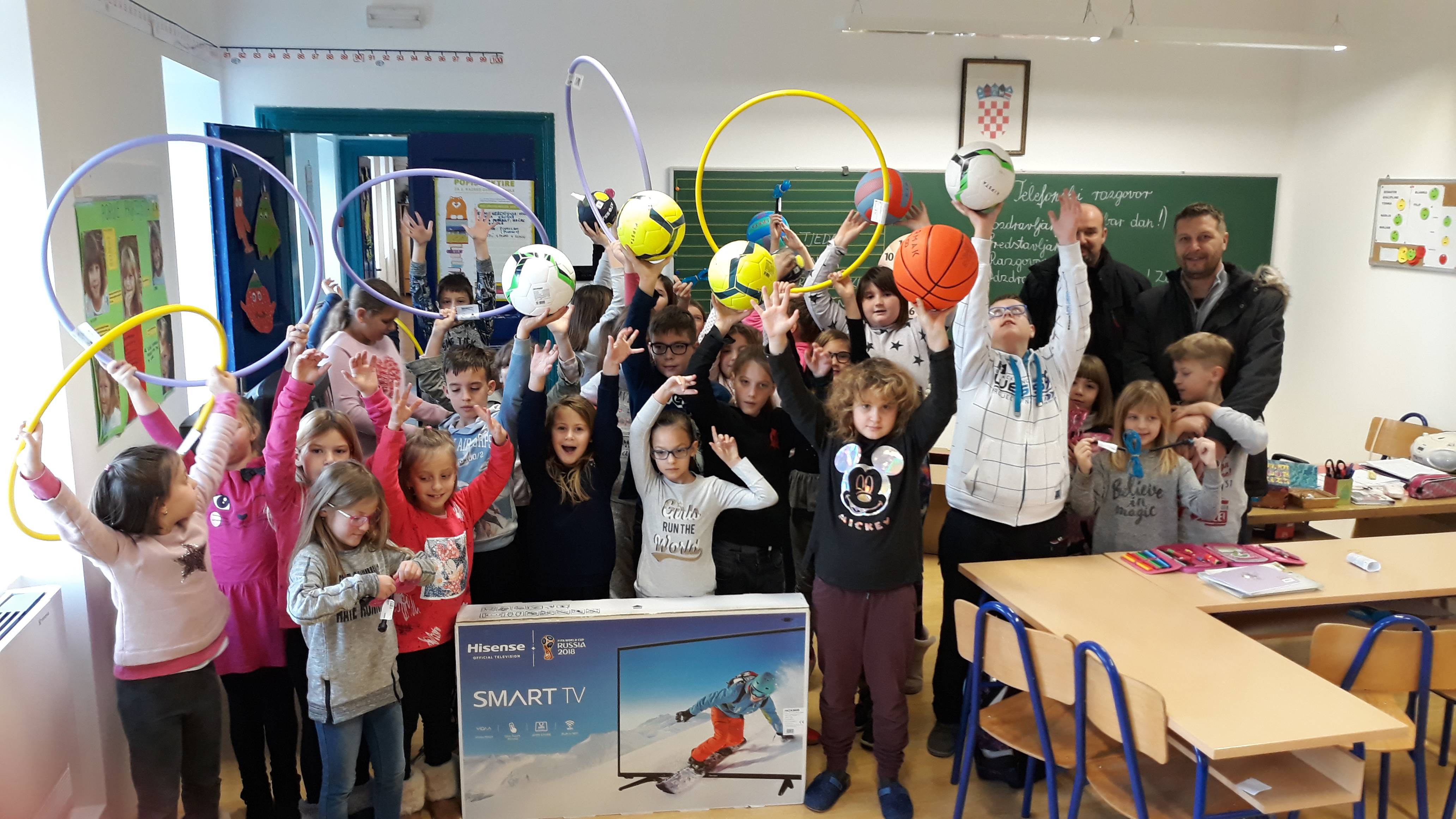 Danas su nas svojim posjetom iznenadili tata našeg učenika Filipa i tata učenice Marte- Marko Krstinić predsjednik i Andreas Grce tajnik Udruge Dolin. U ime Udruge donirali su našoj područnoj školi lopte, vijače i obruče za tjelesni te plazma televizor.