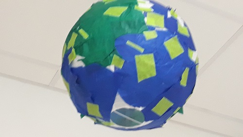 Drugi dio radionice činila je izrada svjetlećih objekata koji su dočaravali planete i njihove jedinstvenosti. Učenici su bili podijeljeni u grupe od 2 do 3 učenika te su koristili papirnate lopte na koje su prenosili svoje viđenje svemirskih tijela pomoću papira, raznih vrsta selotejpa, folija i na kraju ukrasnih lampica. Kroz ovaj zadatak uspješno su povezali likovni jezik s geografijom i tehničkom kulturom, suočili s timskim radom i dijeljenjem likovnog materijala kroz cijeli izvedbeni tijek. Bazirani na kreativnom načinu izražavanja, a koristeći se slikarskim tehnikama (tempere na papiru i kolaža) stvorili su planete, satelite i njihove orbite koji su činili finalne likovne objekte u prostoru.