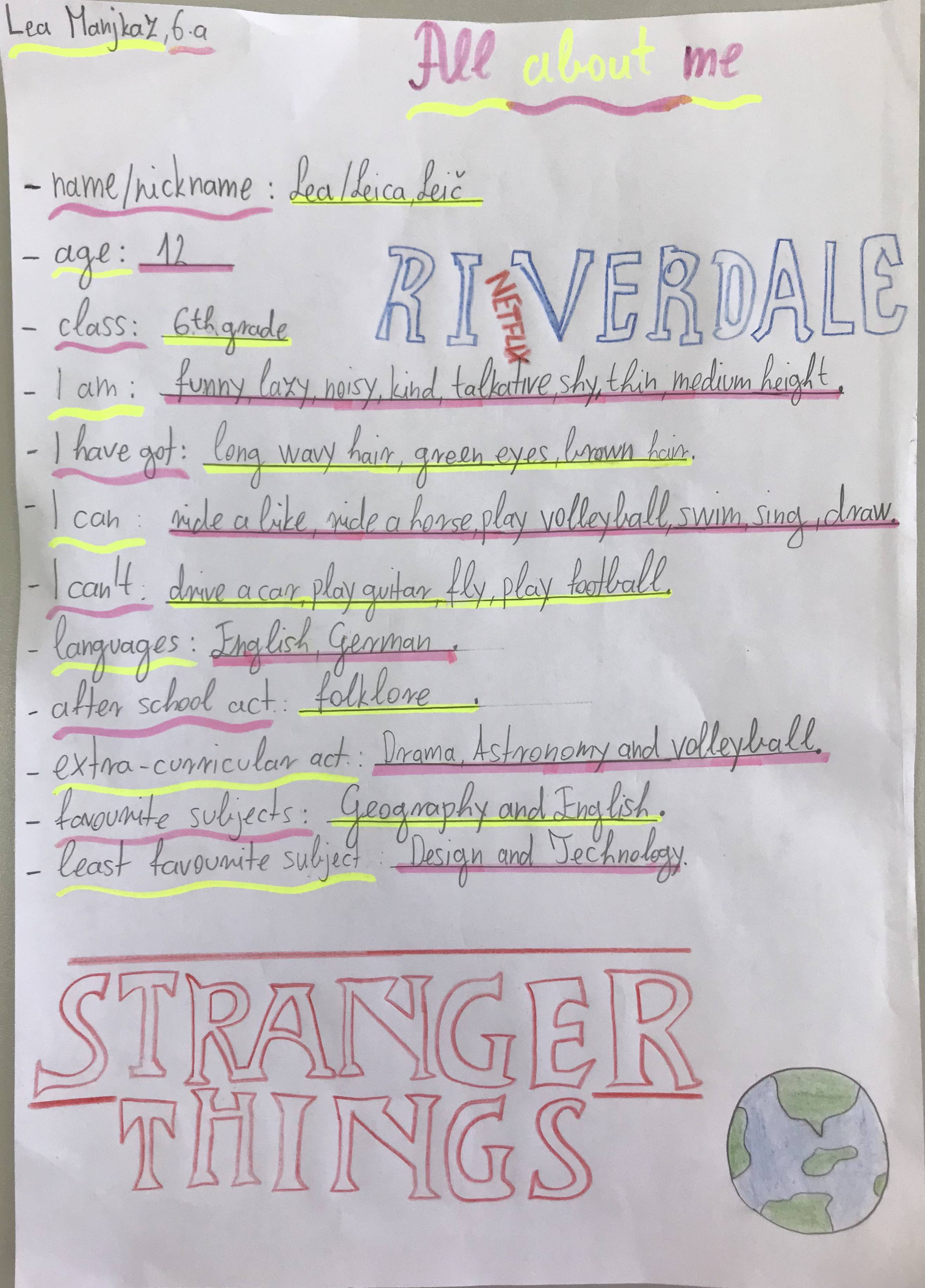 Razgovarali smo o ljudskim osobinama, fizičkome izgledu, školi i slobodnome vremenu, a najkreativnije radove možete pogledati u nastavku.