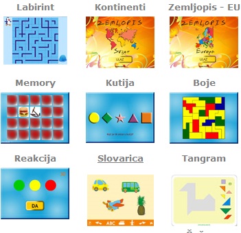 Početna slova, Mali piano, Kontineti, Zemljopis- EU, Geometrijski likovi, Puzzle....