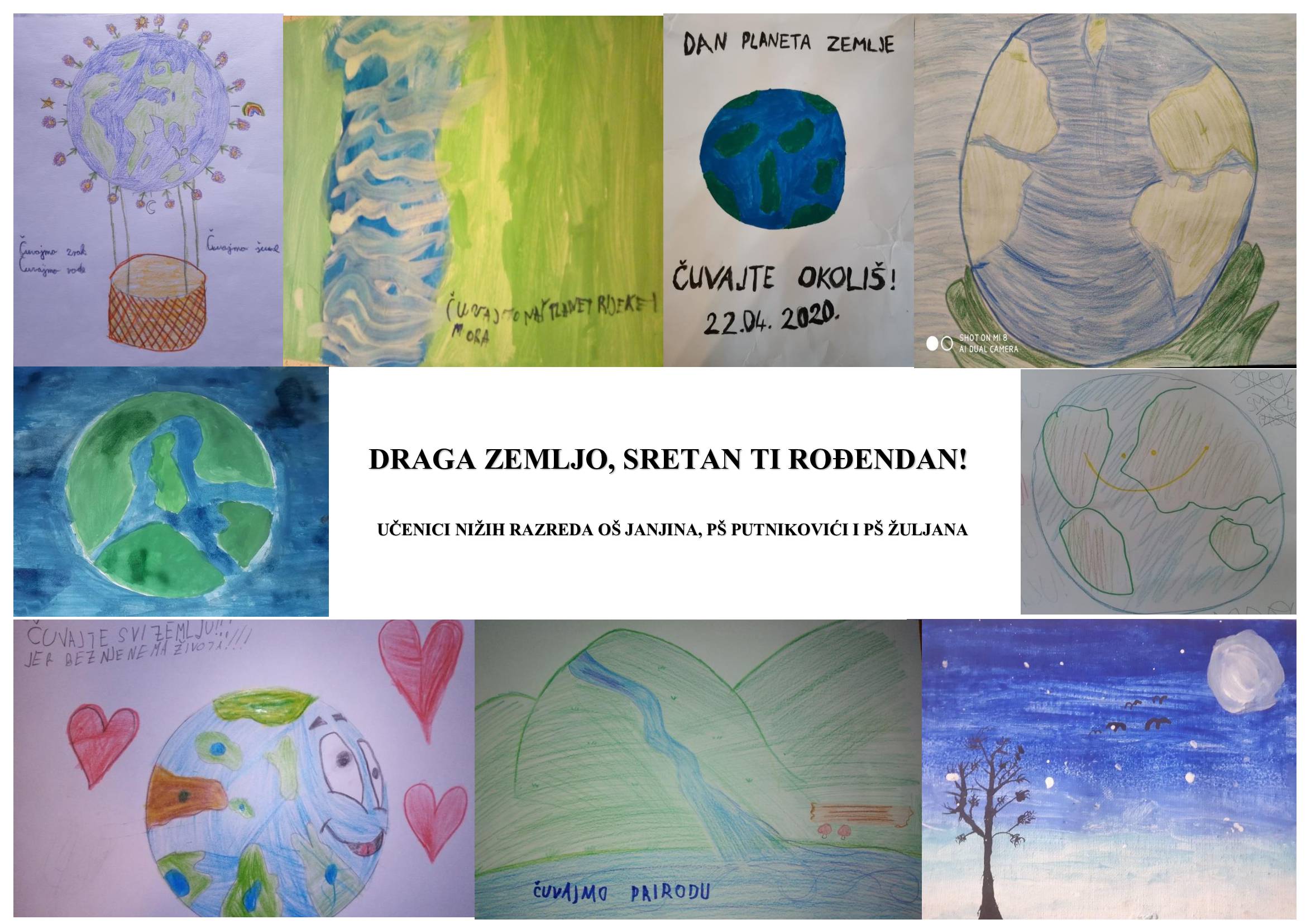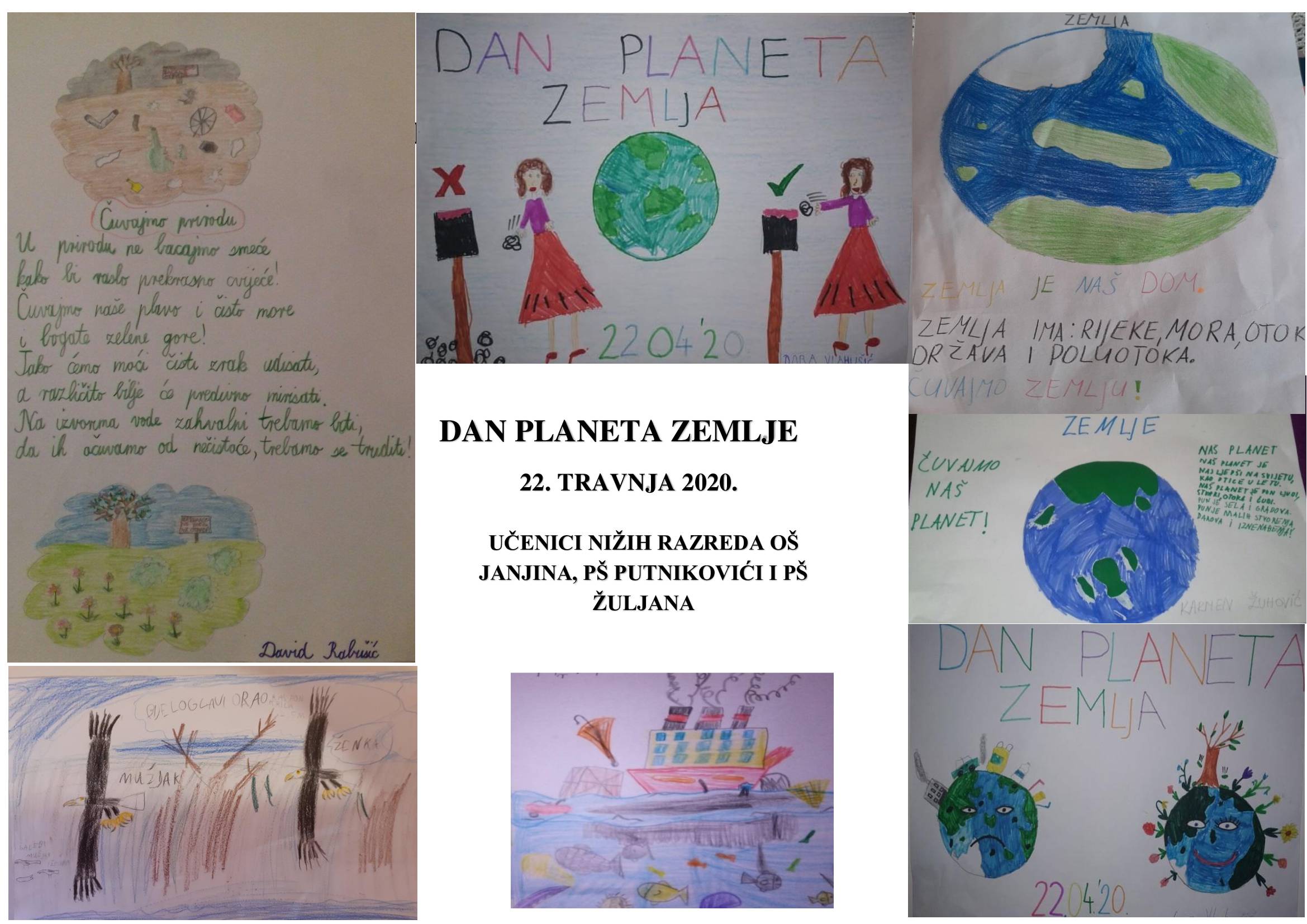 Jučer se u više od 150 zemalja diljem svijeta, obilježio Dan posvećen našem domu, planetu Zemlji. Pa su se tako učenici nižih razreda Osnovne škole Janjina, Područne škole Putniković i Područne škole Žuljana zajedno s pedagoginjom potrudili i obilježili Zemljin rođendan tj. Dan planeta Zemlje.