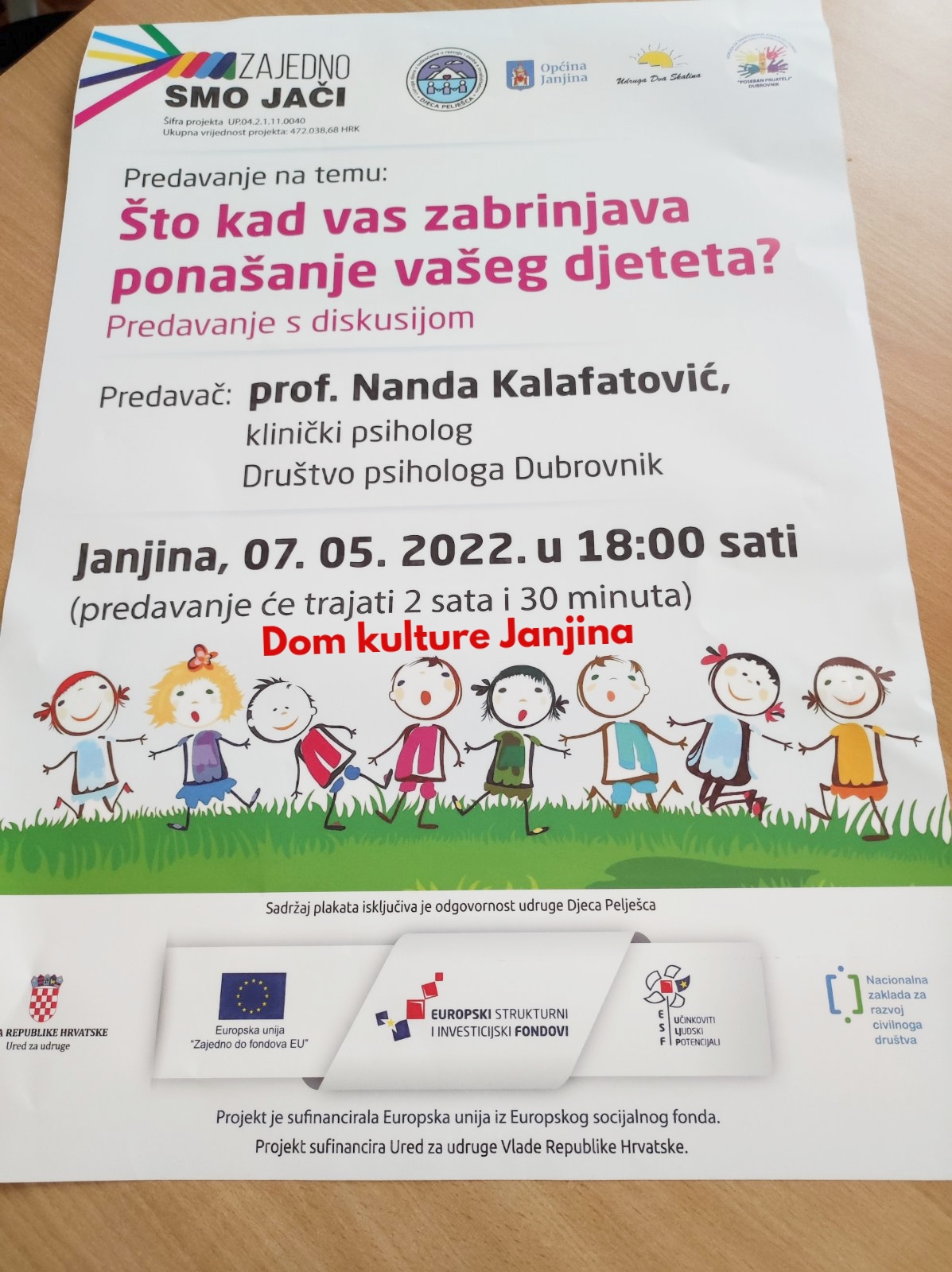 Pozivamo sve zainteresirane na edukativno predavanje u organizaciji udruge Djeca Pelješca: