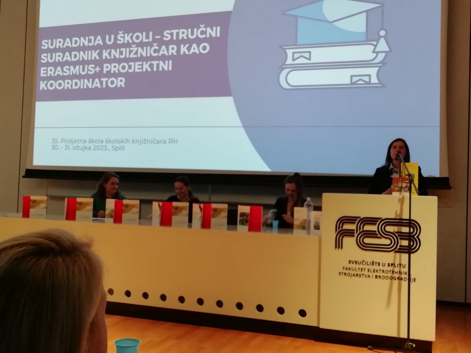 Knjižničarka je predstavila projekt "Radosno dijete - napredna škola" na državnom skupu školskih knjižničara 35. Proljetnoj školi školskih knjižničara RH koji se održavao od 30. do 31. ožujka 2023. god. u Splitu. Knjižničarka je osim predstavljanja projekta, promovirala i Erasmus+ program sa željom poticanja drugih kolega iz naše države na uključivanje u Erasmus+ program i razvijanje međunarodnih suradnji.