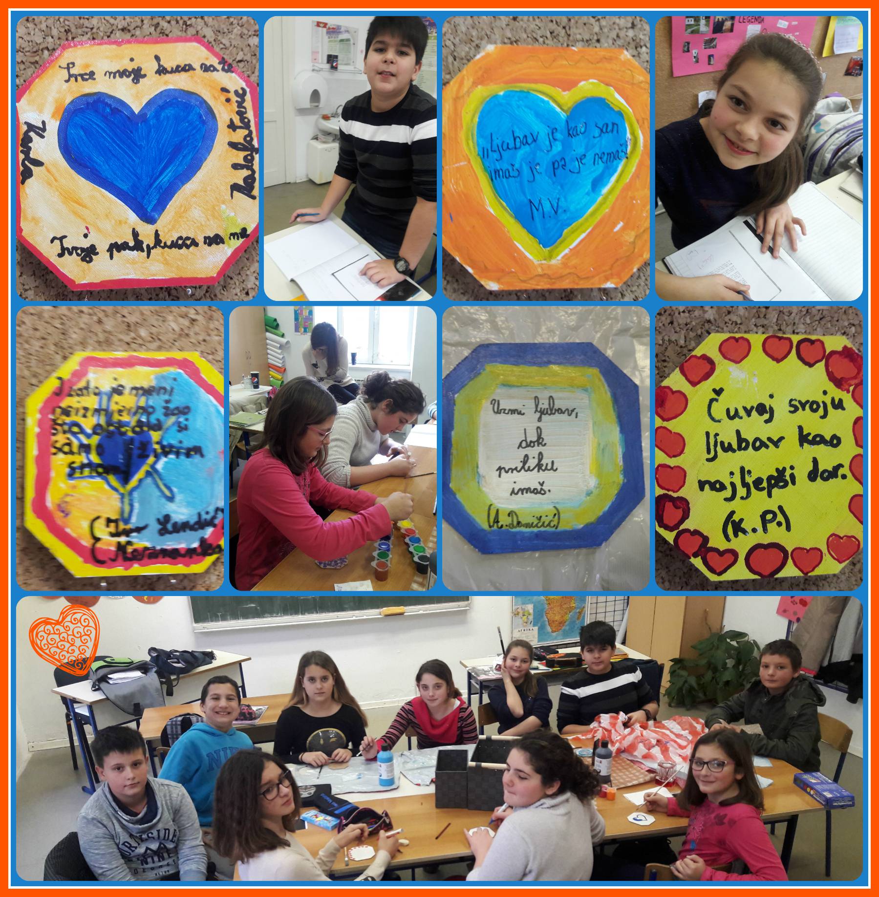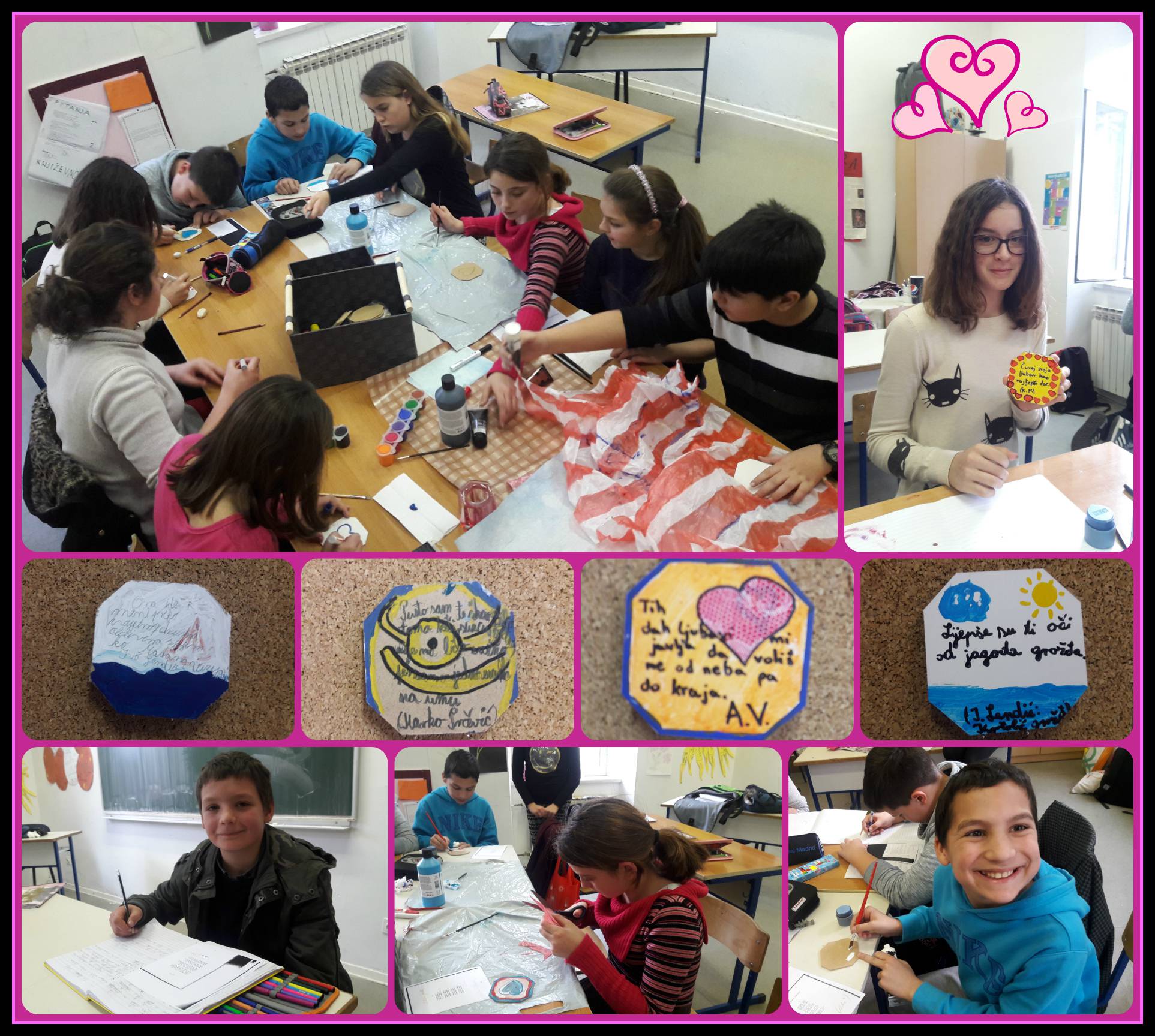 Kao što ste već mogli i primijetiti na našim stranicama, učenici naše škole kreativno su obilježili ovo Valentinovo, a radovi koje su napravili proizašli su iz radionica ljubavne lirike posvećene radu pjesnika naših krajeva: Mariji Dalmatin, Anti Bautoviću i Ivi Lendiću. Radionice su učenici od 5. do 8. razreda imali u sklopu nastave hrvatskoga jezika.