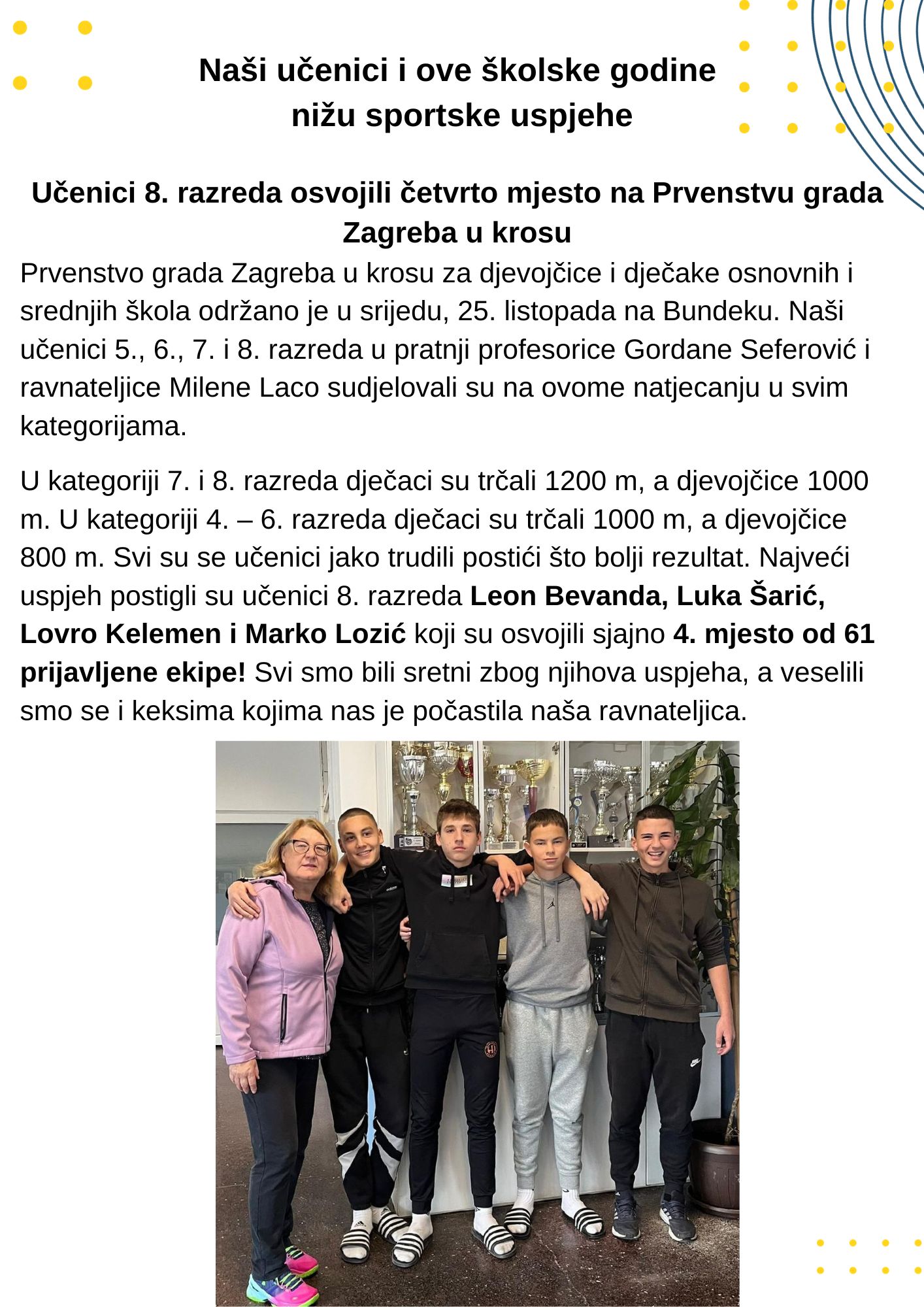 Naši učenici i ove školske godine nižu sportske uspjehe