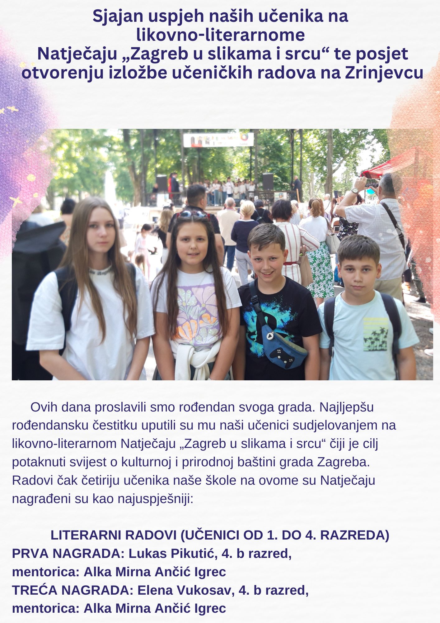 Učenica Sara Marija Kordić postigla odličan uspjeh na likovnome natječaju „Ples boja i ritma“