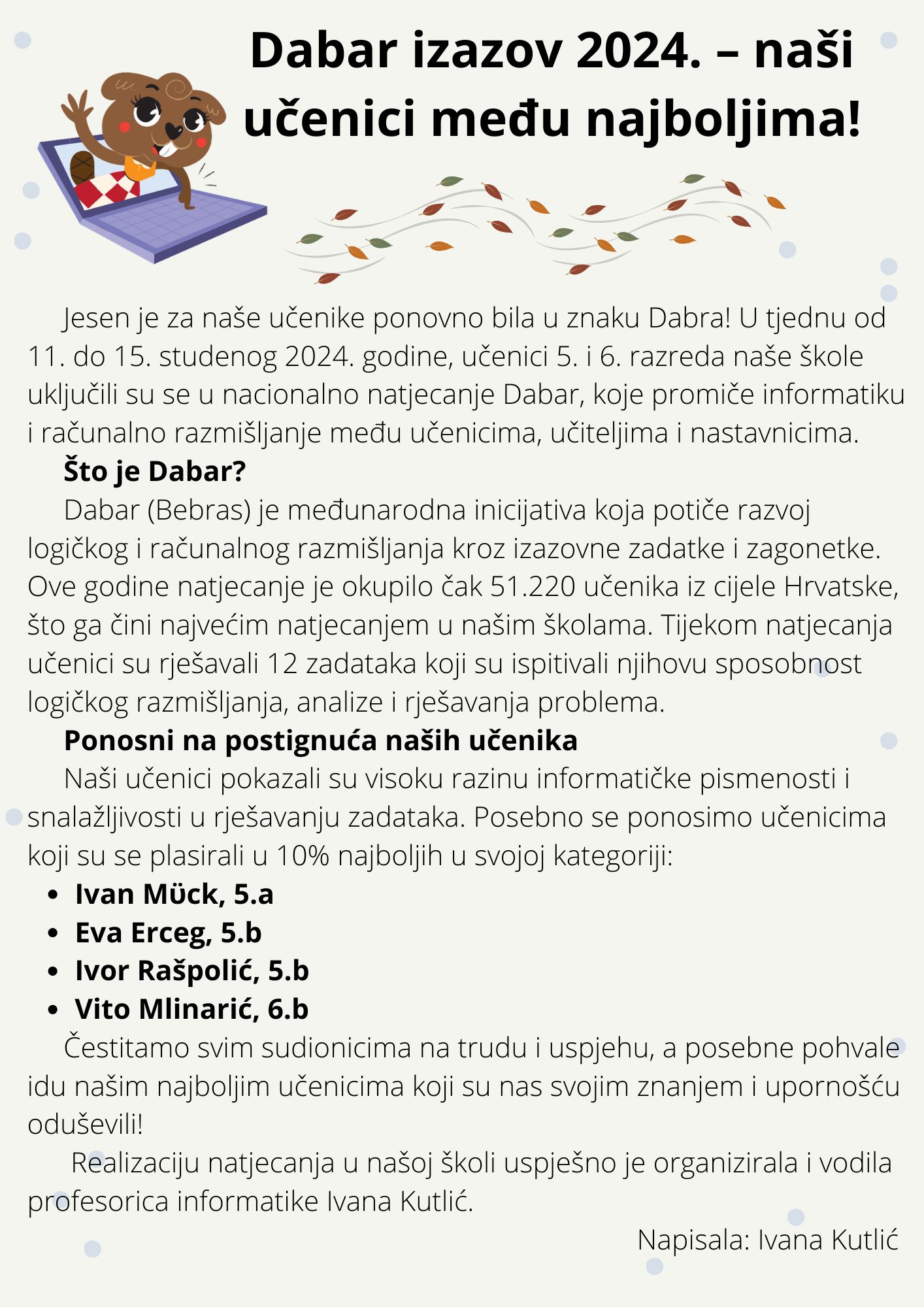 Za daljnje obavijesti o postupku utvrđivanja psihofizičkog stanja djeteta pratite web stranicu Škole.