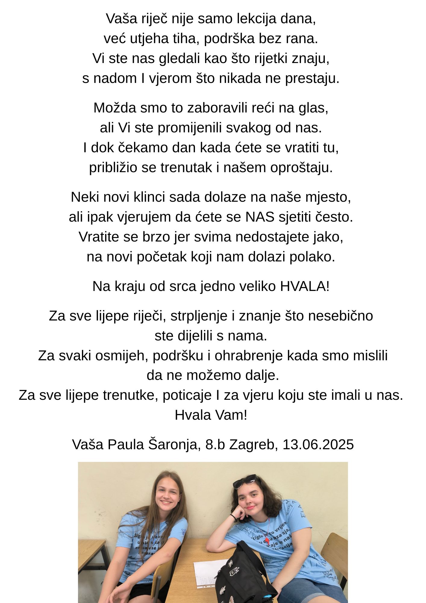 nepreuzete svjedodžbe možete podići u srijedu, četvrtak ili petak, od 5. do 7. srpnja 2023. od 10 do 12 sati.